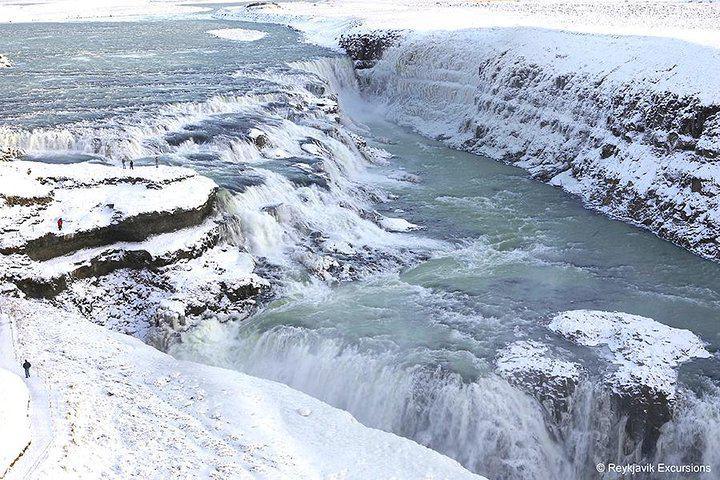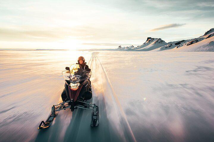 Explore the Golden Circle on a stress-free tour from Reykjavik. Visit Thingvellir, Geysir, Gullfoss, and ride a snowmobile on Langjokull Glacier while enjoying breathtaking views with expert guidance.