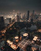 Rooftop bar at Dusit Thani Bangkok with panoramic skyline views and crafted cocktails. 🌇🍸
